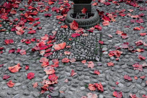 Solitaria o accompagnate da altre foglie; ancora viva sull’albero che irrompe nel grigiore di una fabbrica; in fase di deperimento e poi giacente senza vita; infine compattata per essere smaltita.
